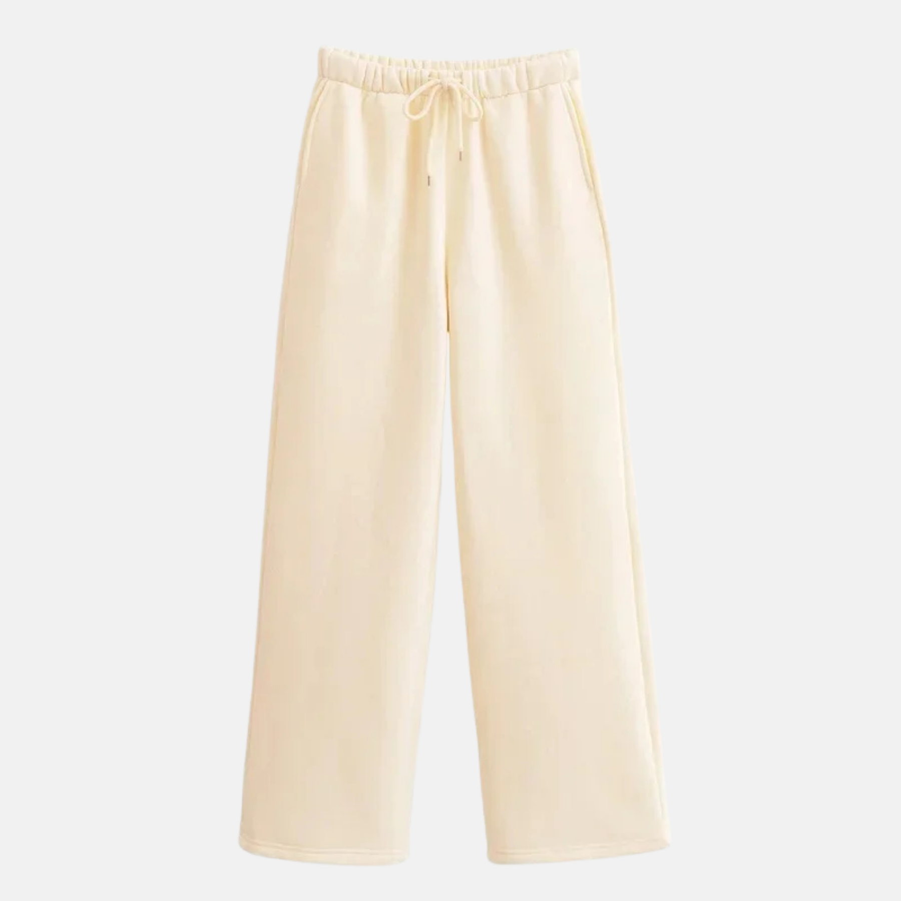 Calça de caimento reto com cós elástico e cordão ajustável. Modelagem ampla e confortável, ideal para composições casuais com toque sofisticado.